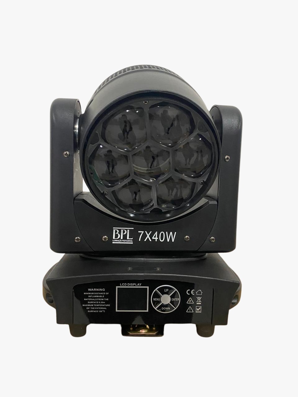 4 unidades no case Moving 7x40, de 280w led Osram. RGBW + efeito BEE EYE DMX, sound e automático. 10 e 16 canais. Bivolt.